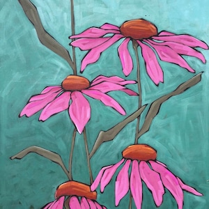 Add a color and a feminine Touch to your home decor with this contemporary artwork showing a pink echinacea, a typical flower of North America.